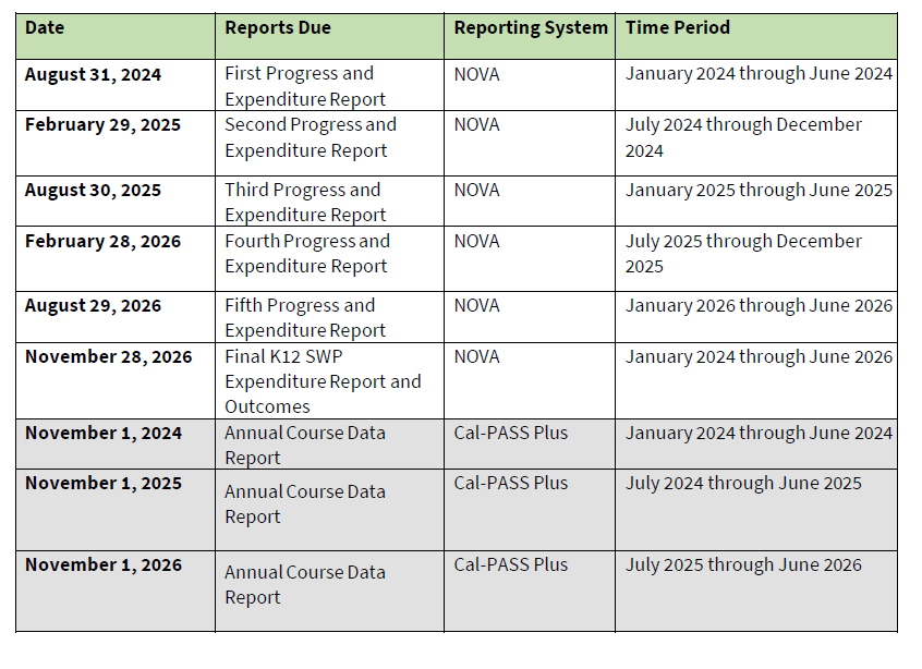 - Round 6: Started January 2024 and ends June 30, 2027 (Please note that the Q2 ending in December 2024 reports will be automatically submitted and approved by the Chancellor’s Office with $0 expenditures since the grant started January 1, 2024.