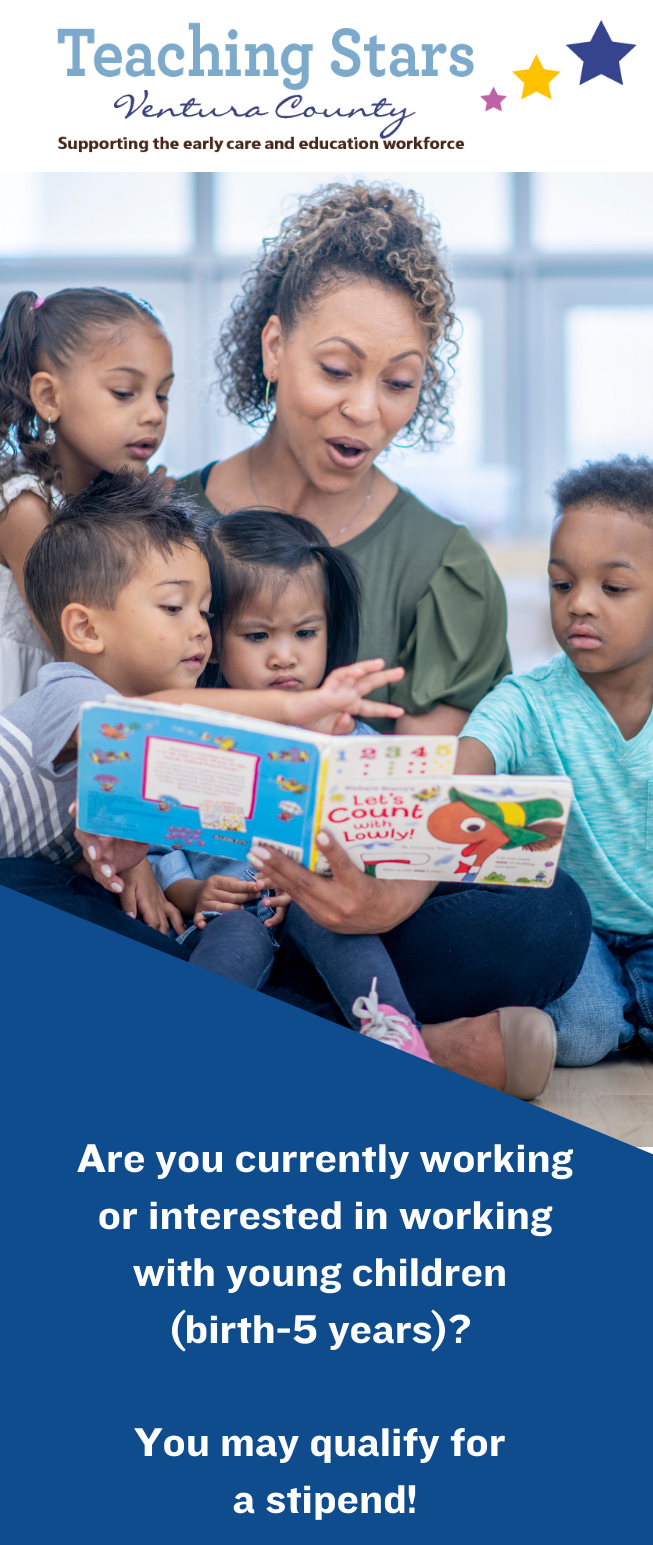 Teaching Stars supports the professional advancement and retention of early learning and care (ELC) educators (including current and prospective transitional kindergarten teachers, state preschool teachers, family child care providers, and others pursuing a degree/coursework in early childhood) by incentivizing activities that promote educator effectiveness, retention, and degree and/or credential attainment.