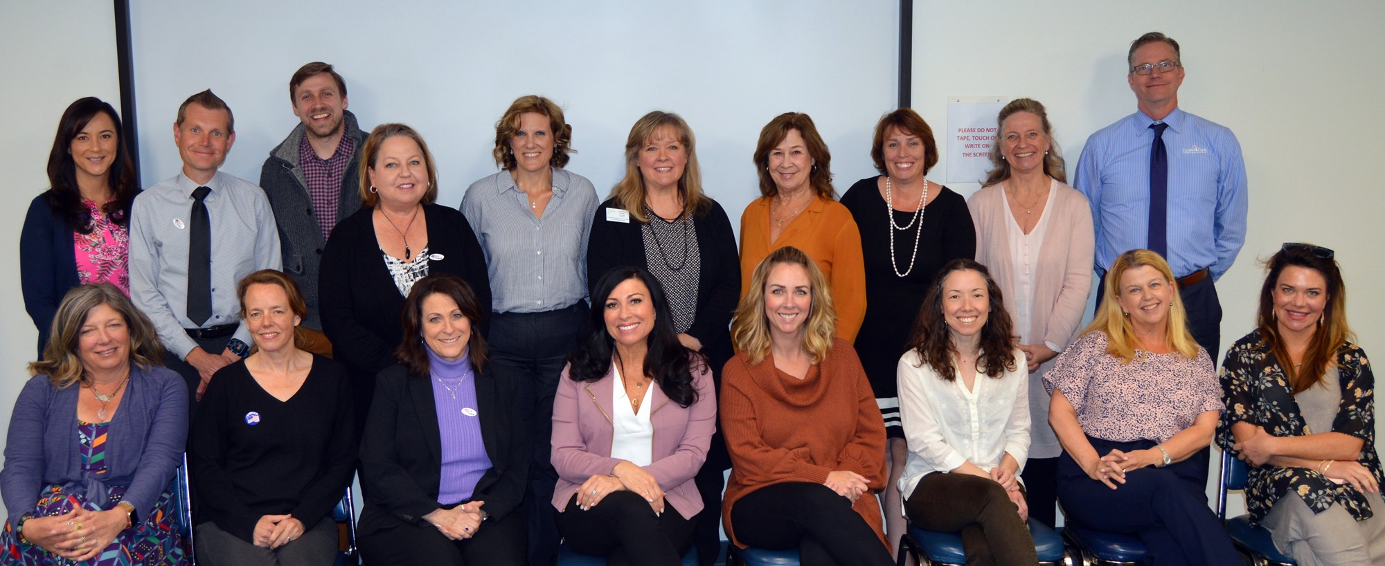 Front row from left – Lisa Hildebrand, Ventura Charter School; Meg Rydman, Golden Valley Charter School; Brenda Olshever, MATES; Marlo Hartsuyker, VCOE Director of Charter School Support and Oversight; Corrine Manley, Vista Real Charter High School; Maria Montagne, River Oaks Academy; Shari Strasburger, Vista Real Charter High School; Kelly Simon, Bridges Charter School